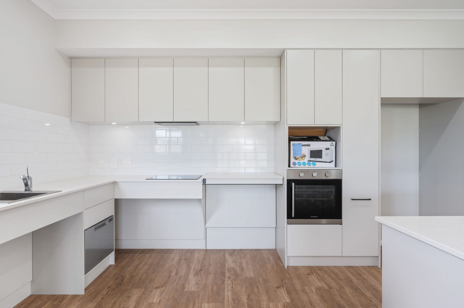 - Kitchen with height-adjustable bench top, dish drawer dishwasher, Caesarstone benchtops, + more