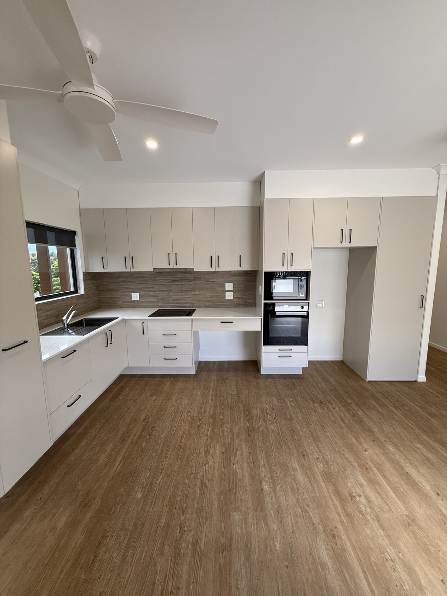 • Modern kitchen with stone benchtops and accessible appliances