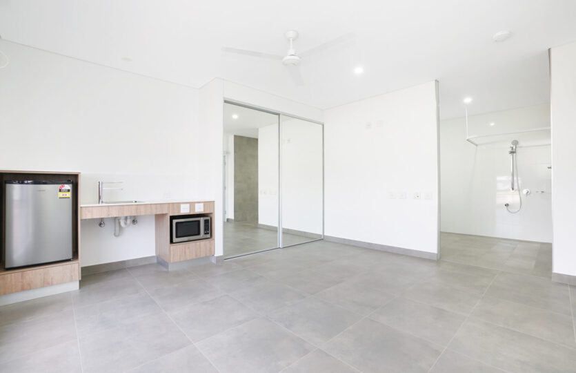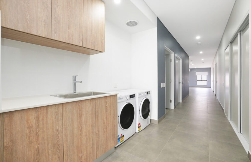 This house features 2 participant bedrooms with ensuites, a large open plan kitchen living and dining space and a fenced in private backyard.